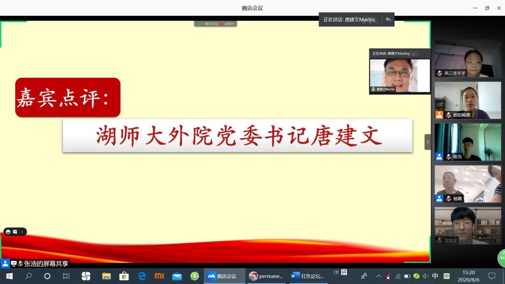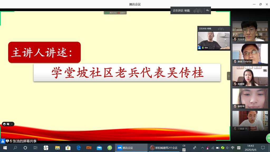 (通讯员 戈治文 李芊芊)8月6日下午,“语你同行”—澳门pg官方电子平台学堂坡社区社会调研团与桔子洲街道学堂坡社区党总支携手开展“传承红军精神,争做时代新人”线上红色论坛活动。院党委书记唐建文,社区主任苏艳云和老兵代表吴传贵,郭牛山参加活动。