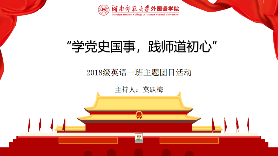 (通讯员 郑如意 张尚文)4月7日中午,2018级英语一班开展了以“学党史国事,践师道初心”为主题的思政学习实践活动。此次活动由澳门pg官网英语系万光荣教授担任思政指导员,2018级英语一班团支部全体成员以及八人研究生小组参与活动,活动由团2018级英语一班团支书莫跃梅主持。