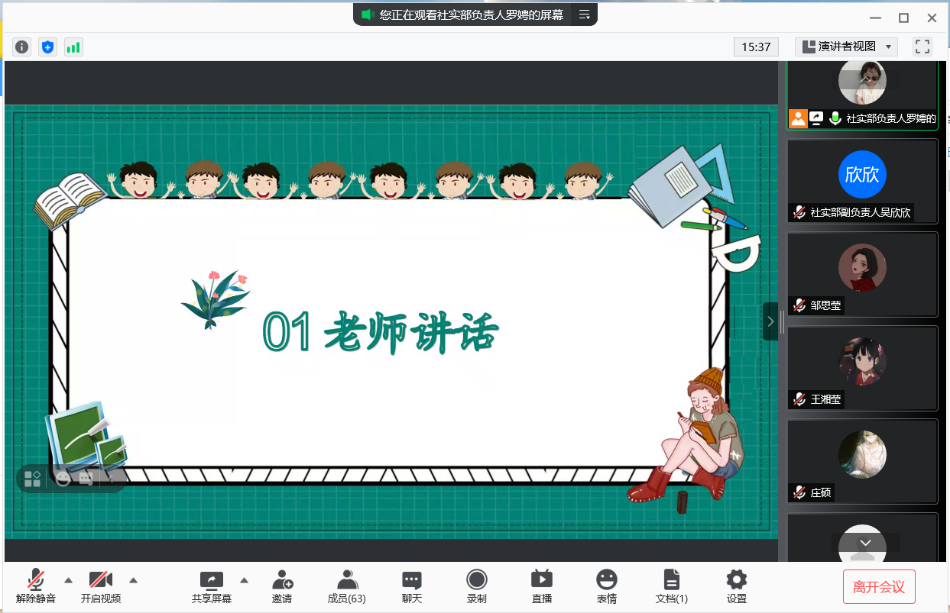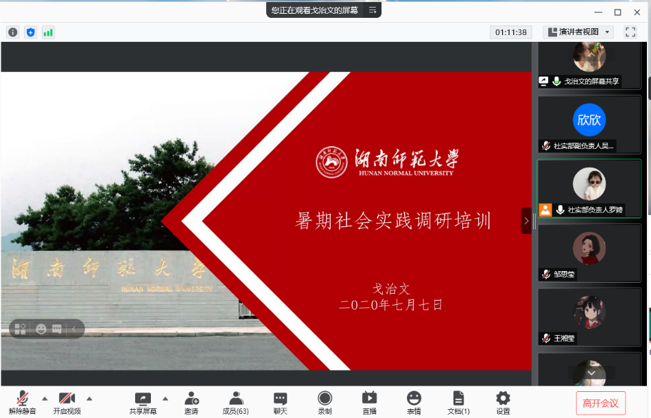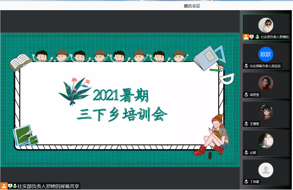 (通讯员 吴欣欣 罗娉)7月8日晚,澳门pg官网2021年暑期社会实践培训大会在腾讯会议平台举行。院团委指导老师姚雯,团委学生副书记刘伊宁,培训主讲人戈治文、刘美汐、夏秦萍,院社会实践部成员及院暑期社会实践团全体队员与会。会议由院社会实践部负责人罗娉主持。