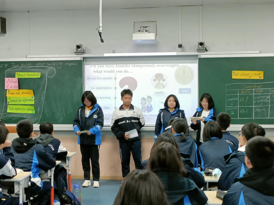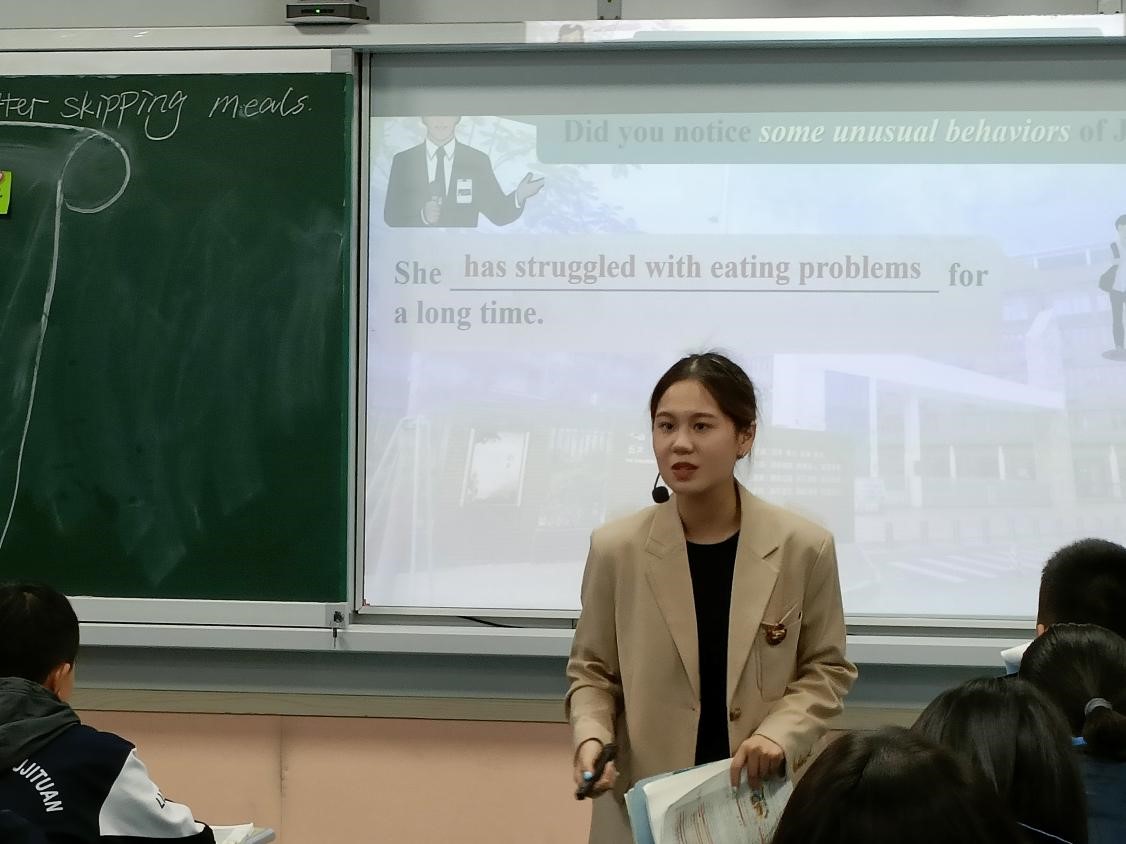 本堂汇报课以必修一Unit 4 Looking good, feeling good中的Teen faints after skipping meals为主题展开,以分析新闻的各大要素为一条主线、告知正处在青少年时期的学生过度减重的危害为另一条主线,各个环节层层紧扣,活动任务顺利展开,课程难度层层递进,并以引导学生发现多元的美作为结尾升华,整节课逻辑结构清晰,课堂气氛活跃,学生积极参与课堂教学,真正做到了以学生为中心,也体现了老师既是教学者也是引导者的教学精神。袁晓杰老师的教姿教态十分自然大方,以良好的专业素养和熟练的师范技能圆满完成了本节公开汇报课,给在场的老师和同学留下了深刻的印象。