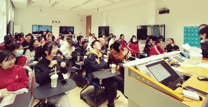 交流结束后,范妮老师进行了总结发言,她概括了班会的主旨,进一步阐述了德文专业的发展前景,并对同学们未来的大学生活寄予希望,给予祝福。在《最初的梦想》的美好歌声中,联合班会划上了圆满的句号。