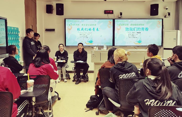 班会以“致我们的青春”为主题,让新生与老生面对面交流沟通,由2020级学长学姐为2021级同学解答学习、生活中的问题。首先,2021级同学抽取2020级同学为他们书写的寄语卡片,并寻找相应的学长学姐,在其身边就坐,展开交流。随后,主持人丁浩然、刘硕宣布班会开始,并热烈欢迎新生同学的到来。接着,阳凌艺老师发言,她简单介绍了2020级德语班的基本情况,说明了此次会议的目的,鼓励两班同学进行友好的交流。
