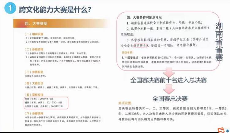 韩静茹、陈天钰结合比赛经历,分别从大赛的前、中、后三个阶段介绍了跨文化能力大赛的要求、过程以及它所带来的收获。他们表示跨文化能力大赛不论是对自身能力的提高还是对眼界的开阔都具有重要意义,并鼓励大家积极参与相关赛事。在分享中,他们指出团队的力量是支撑他们能够不断前行并最终取得佳绩的重要保证,“一个人可以走的很快,但一群人才能走得更远”。