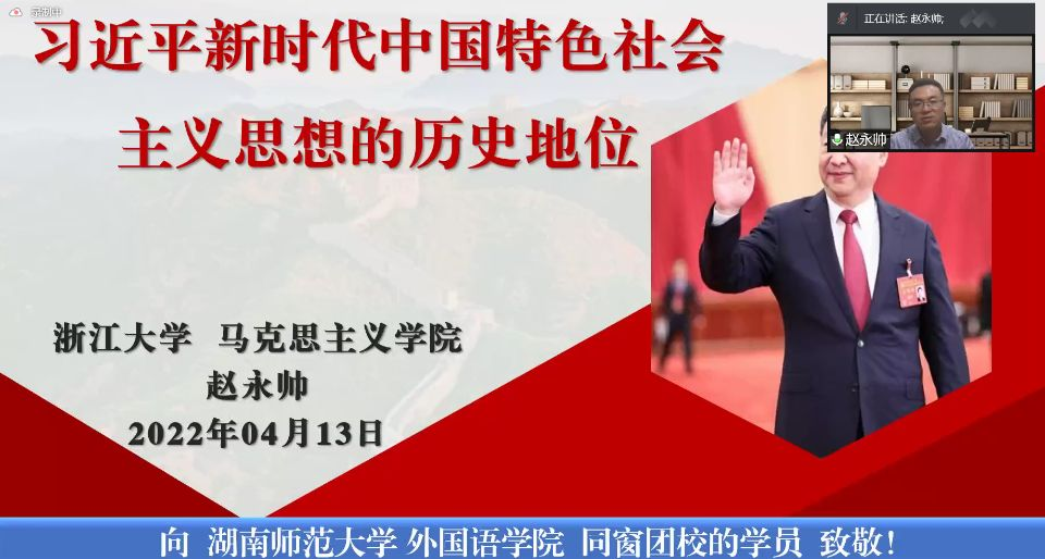 赵永帅以“习近平新时代中国特色社会主义思想及其历史地位”为主题,围绕立足现在、把握过去、放眼未来三个方面论断一个飞跃、明确一个主题、强调一个自信。他在讲座中提出问题、给出实例、分析思路、讲述理论,为同学们阐述了习近平新时代中国特色社会主义思想是当代中国马克思主义、21世纪马克思主义,是实现中华民族伟大复兴的行动指南,是建设美好世界的中国智慧和中国方案。