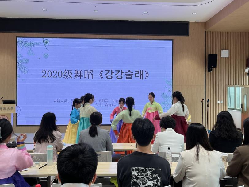 活动间隙,朝鲜语系2019级、2020级同学进行了舞蹈展示,2018级毕业生献唱歌曲《青蛙》,表达对朝鲜语系全体老师的真挚感谢,掀起现场热潮。2022届研究生毕业生代表上台为在座学生就学业规划、就业经验、升学经历等问题进行了主题分享与互动交流。