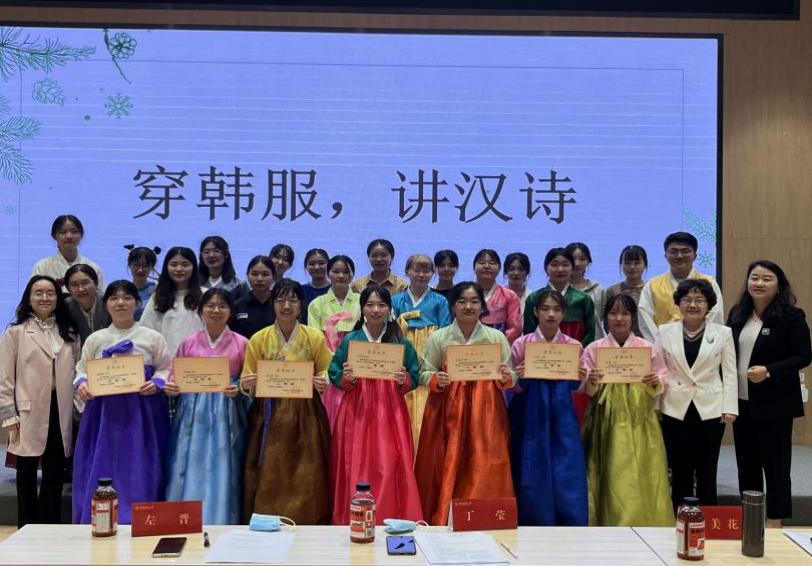 (通讯员 胡玉轩 彭秀文)2022年5月19日,澳门pg官网朝鲜语系、澳门pg官方电子平台韩国学研究所于腾龙楼613会议室共同举办“穿韩服,讲汉诗”诗歌朗诵比赛暨毕业生就业分享会。澳门pg官方电子平台东北亚研究中心主任、朝鲜语专业建设带头人蔡美花、朝鲜语教师韩燕、丁莹、左晋受邀担任本次活动评委,朝鲜语专业本硕博全体学生观看了本次活动。