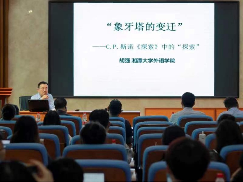 开幕式第二项,湘潭大学胡强教授作主旨发言。发言的主题是“何以为研究?何以是研究生?”胡教授对C.P.斯诺的学院派小说《探索》进行了深度剖析,希望借用小说中主人公的学术经历启迪学生深入思考。首先,胡教授讲述了主人公迈尔斯痴迷于对欲望和权力的追逐之中,在金钱与地位的晋级中,迈尔斯偏离了学术本真的道路。紧接着,胡教授分析了迈尔斯的学术场滑铁卢、反思与回归学术初心的过程。通过剖析这部小说,胡教授旨在启迪研究生:所谓研究生,即“研者,磨也;究者,穷尽也。”在学术的道路上,我们必定会在学术纯粹与欲望“卡利斯玛”中挣扎。学术研究就像是一场纯粹、持久且坚定的修行,但对知识的追求如果不纯粹,就会成为“进步的异化”,偏离正确的航向。因此,在学术道路上,要时时守望初心。梁斌副院长表示:历史就是不断的重复,学术经历总是相似的,这部小说历久弥新,一直启迪着学者对科研道路上人生、知识、考验等方方面面进行思索。