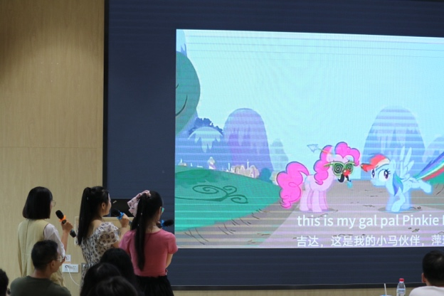 比赛在热烈的气氛中正式拉开帷幕。首先上场的第一组选手选择配音的作品是《哪吒之魔童降世》,四位同学幽默诙谐地模仿着剧中卡通人物的对白,或喜悦、或发怒、或俏皮搞怪、或成熟稳重。他们用流利的英文将不同角色的形象诠释得栩栩如生。