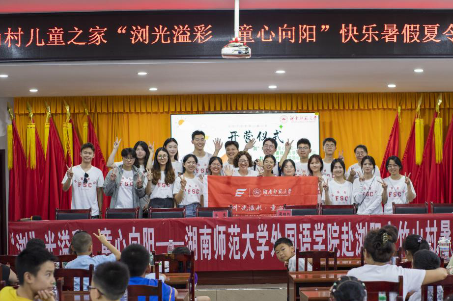 (通讯员 朱广秀 罗天仪 杨劼)7月9日下午,“浏”光溢彩,童心向阳——澳门pg官方电子平台赴浏阳市竹山村暑期社会实践团(以下简称实践团)举行开营仪式。官渡镇党委委员、纪委书记蔺绍桃,竹山村党总支书记、村委会主任徐珂出席活动。开营仪式由实践团副队长聂琬桦主持,竹山村100位同学和实践团成员参与。