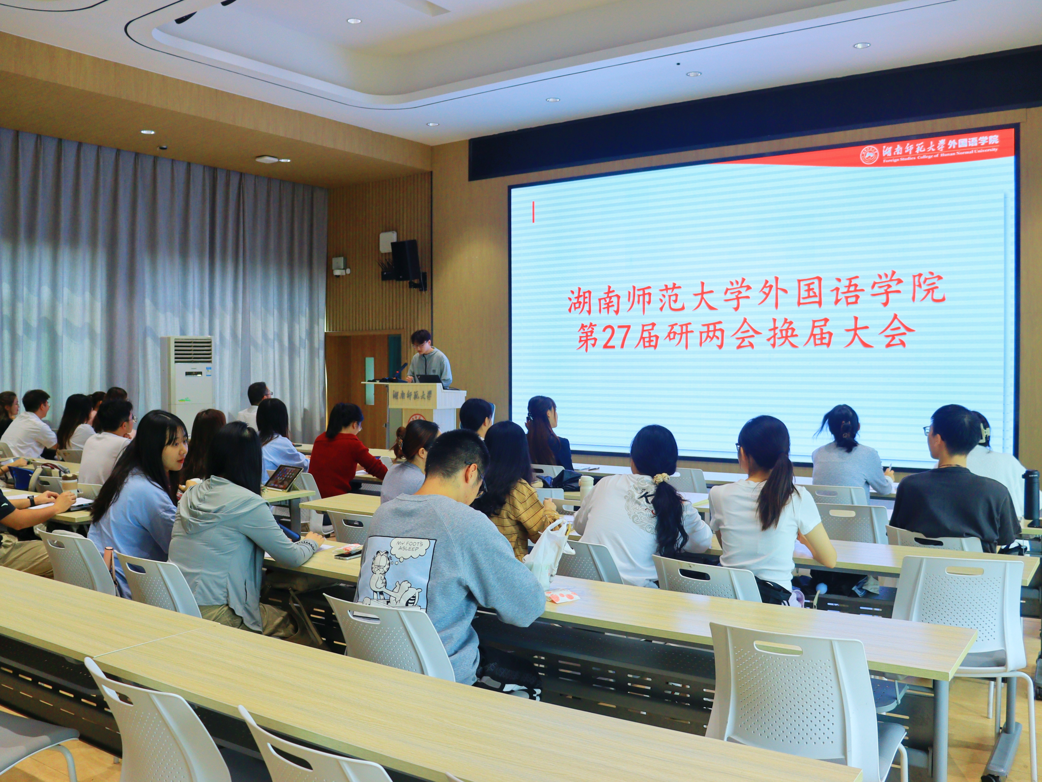 (通讯员:陈淑敏)2024年10月10日,澳门pg官方电子平台第27届研两会换届大会在腾龙楼多功能报告厅613教室召开。澳门pg官方电子平台副院长梁斌和研究生办公室邓林老师出席大会,第27届研两会成员参与此次大会。