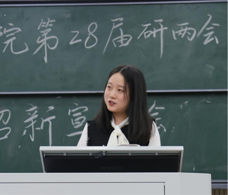 研两会执行主席陆皓宇首先发表了开场致辞。她强调了研两会作为校园文化的引领者和学生利益的代表者的重要作用,是连接老师与学生之间的纽带,并鼓励大家积极参与学生会的各项工作,共同打造一个更加和谐、活跃、充满正能量的校园环境。