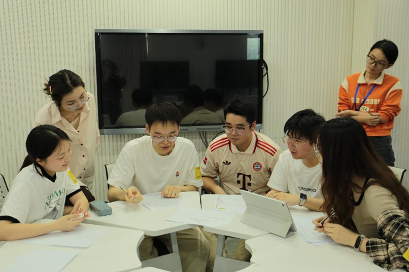 网球场边的“你划我猜”游戏,选手间全程仅能用英文、法语、日语等非母语语言进行交流讨论。面对诸如 “artificial intelligence”“cultural heritage”等抽象词汇,比划者通过生动的肢体语言和关键词提示,将词汇含义传递给队友。队友们则凭借敏锐的观察力与对自己专业词汇的熟悉度,快速猜出答案,现场充满智慧碰撞的火花与欢乐的笑声。