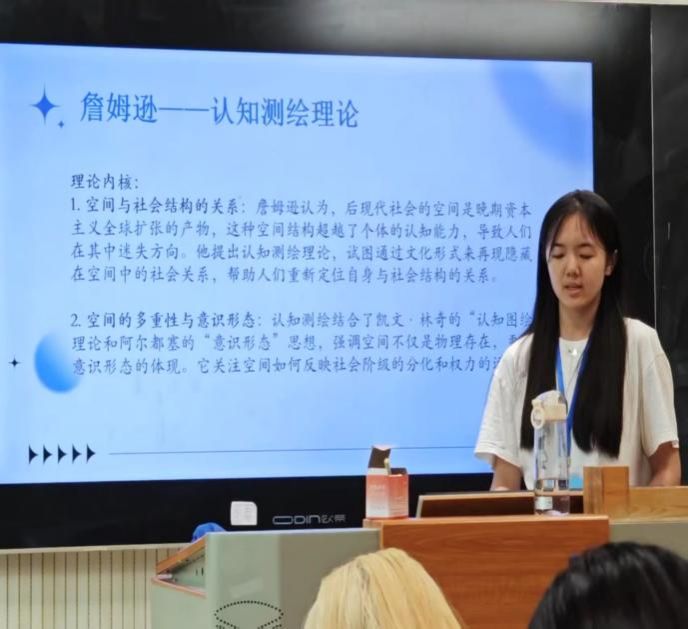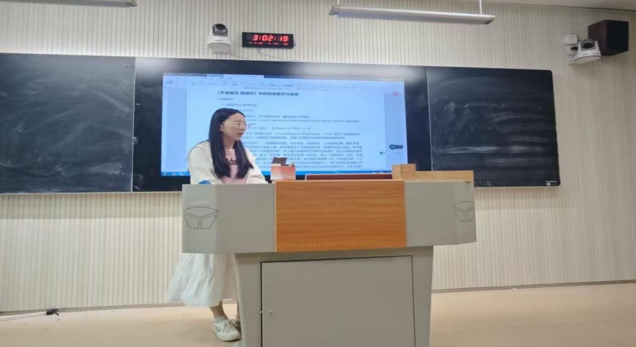 6月18日下午,两位同学围绕自身研究方向和学习体会进行了专题分享,并与在场师生展开了深入交流。首先,来自南开大学的博士研究生王阳阳以“当下主义”(Presentism)与“历史主义”(Historicism)两个学术概念为切入点,结合上午讲座的内容,分享了近日的学习思考。随后,重庆大学博士研究生才季敏围绕“如画”(Picturesque)与“崇高”(Sublime)等美学概念,深入剖析了亨利·詹姆斯小说中的艺术表现。两位同学的分享引发了在场师生的积极回应和热烈讨论。此次学术讨论不仅展现了同学们扎实的学术积累和独立思考能力,也进一步深化了大家对文学理论与批评方法的理解与认知。