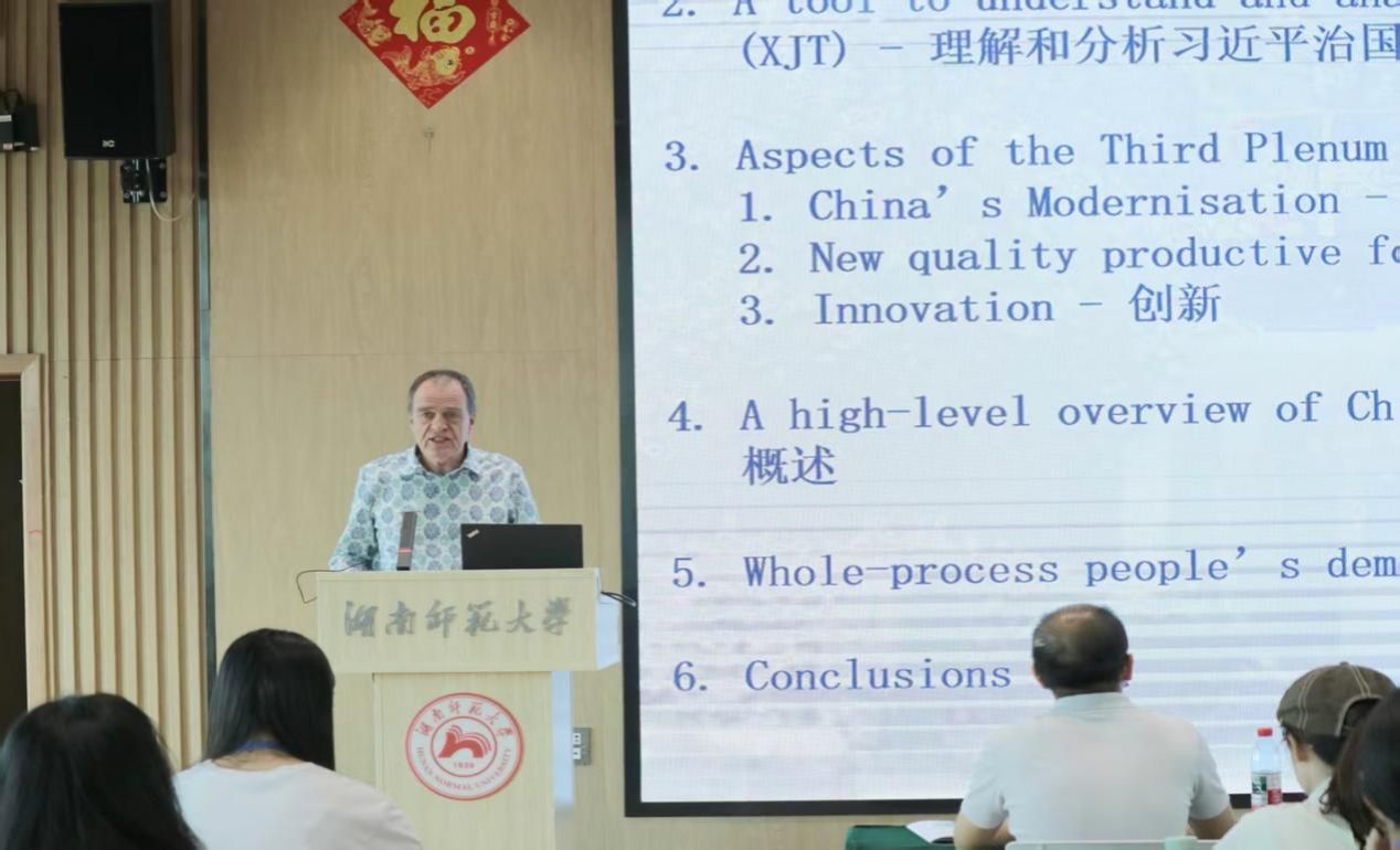 6月16日上午,暑期学校的学员们迎来首场讲座——“Issues of Governance and China’s International Discourse”,主讲人是大卫·弗格森(David Ferguson)。弗格森先生是知名国际传播专家、中国政府友谊奖、首届兰花奖获得者、中国外文局外文出版社荣誉英文主编。从参与《习近平谈治国理政》译文改稿工作的经历出发,弗格森分享了他对中国领导人治国理念的理解,认为中国式现代化追求新质生产力和创新,而创新的一个重要面向,是寻求中国正式对外话语新的翻译和表述方式。弗格森认为,传统的翻译容易犯复杂难懂、冗长啰嗦、术语堆砌和公式化表达的毛病,这不利于中国形象的国际传播。新的国际传播战略要反对八股且不要完全依赖正式的政治话语,而是建立多种渠道,争取更广泛的受众群体。比如以影视剧作品讲好中国故事,争取国际友人在社交媒体为中国发声,开展体育、商业、文化、旅游等各领域的跨国交流,更多依靠新一代年轻人作为跨文化交流的中介。对于弗格森而言,翻译的功用不只是任务驱动的语言转换(像人工智能那样),因此不能只是被动地传声。好的文化翻译应当是目标驱动的,要以完成信息沟通为目的,有创造力,视野广阔并保持质疑精神。这样才更有可能讲好中国故事。正因如此,弗格森坚信,翻译是不会由人工智能所取代的。