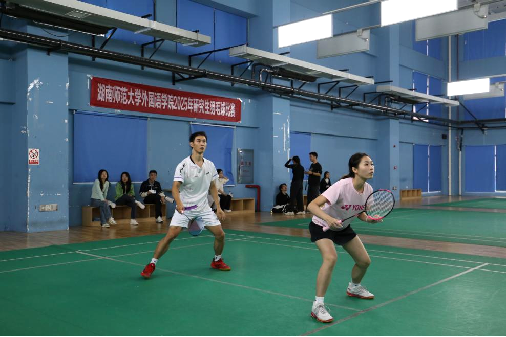 表演赛结束后,主持人宣布比赛正式开始。本次赛事涵盖男双、女双、混双三大项目,共吸引全院36支研究生队伍踊跃参与,选手们攻防交错、精彩迭出,尽显外院学子的竞技热情与青春风采。