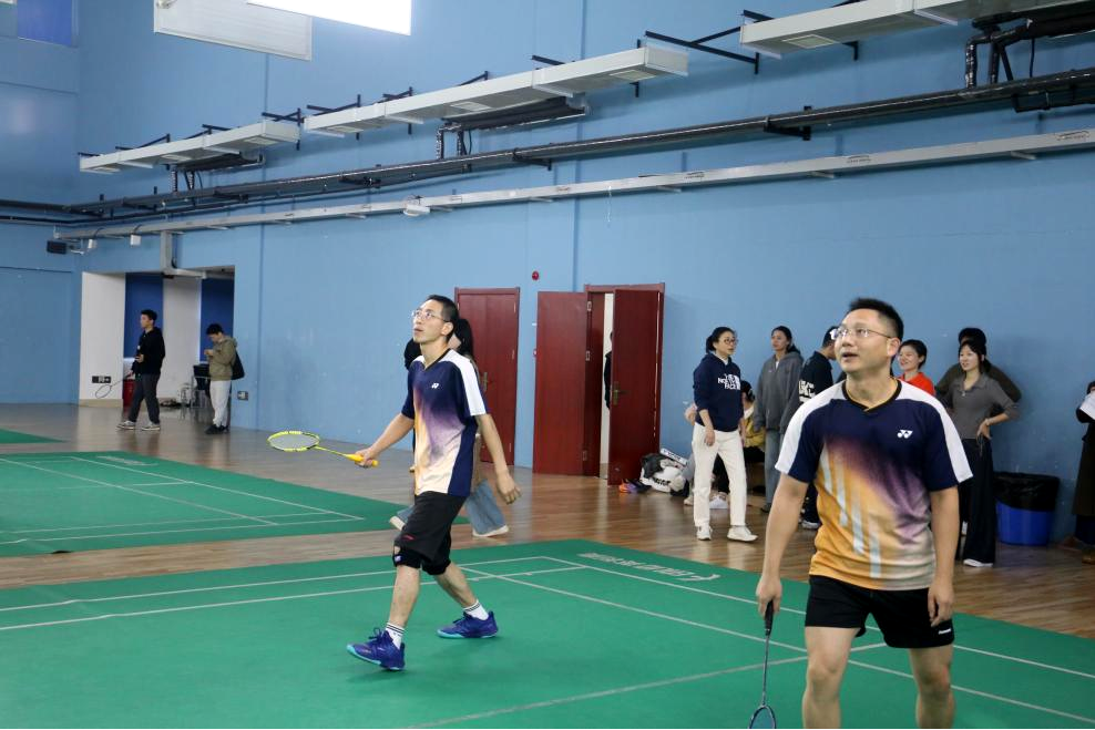 随后,梁斌副院长与李洪坤副教授携搭档登场,开启友谊表演赛。师生四人配合默契、挥拍利落,既展现出扎实的运动功底,也传递出昂扬的精神风貌,为赛事提前营造了浓厚的交流氛围。