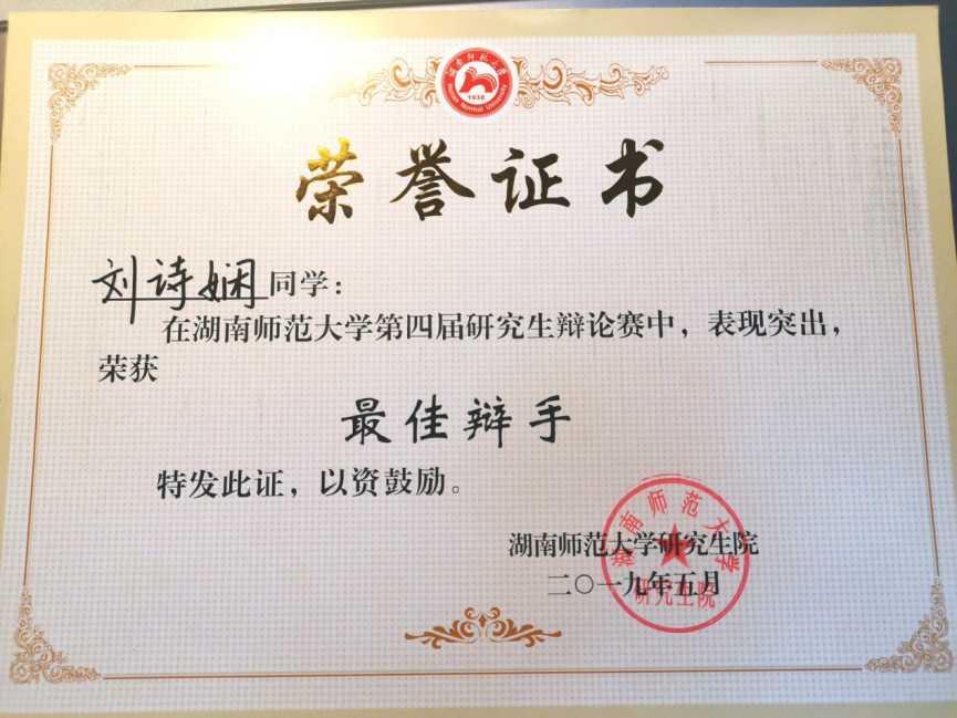 第四届研究生辩论赛最佳辩手澳门pg官方电子平台刘诗娴