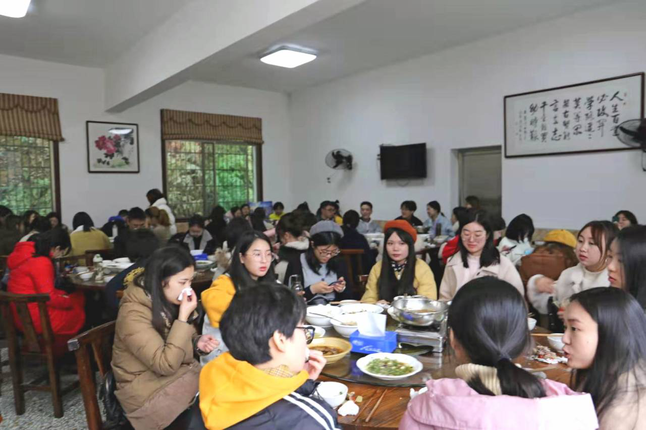 中午十二点,第一阶段的素质拓展活动结束,老师们和同学们共进午餐。在等餐期间,各队队员间都轮流进行了自我介绍,组织了一些小游戏,如成语接龙、谁是卧底等,在队与队之间也进行了一些互动。同学们在小游戏的参与过程中,更加地熟络了起来。随着谭老师、易老师和刘老师的出席,现场气氛达到了高潮。
