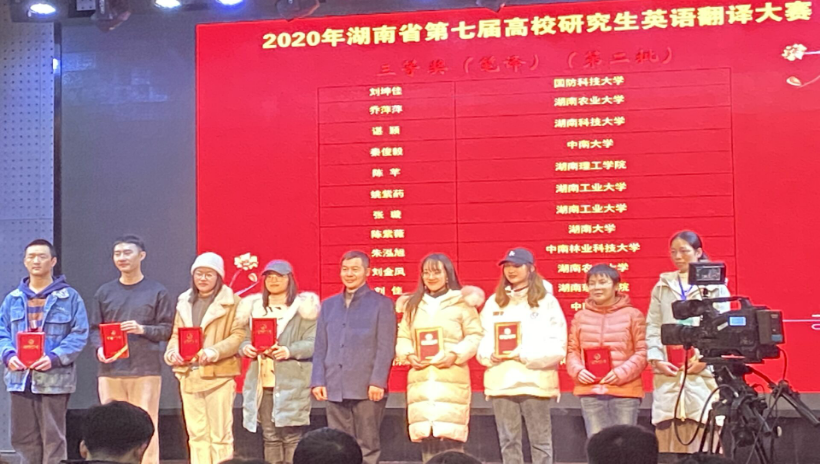 (通讯员:余妮)2020年12月13日,第七届湖南省高校研究生英语翻译大赛(以下简称“大赛”)在湖南工业大学澳门pg官方电子平台进行。在澳门pg官方电子平台研究生院的领导及澳门pg官方电子平台的组织下,我校参赛选手在此次大赛中取得了骄人的成绩。获奖率高达100%,创下了我校自参赛以来历史最好成绩。特别是赛事设置的英语笔译一等奖5人中,我校选手获揽3席。口笔译一等奖共计8人,我校选手就占了4位。