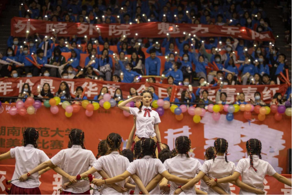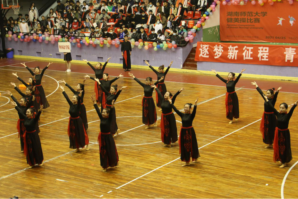 据悉,此次比赛由共青团澳门pg官方电子平台委员会、校学生会主办,各学院学生会分会协办,共有本科生20支、研究生11支队伍参赛。澳门pg官网本科生队带来的是Ten Decades To Today,研究生队带来的是《灯火里的中国》。两队出场时,外院学子高呼“外院外院,魅力无限”为参赛选手加油鼓气,口号声响彻全场,振奋人心。队员们动作明快奔放、节奏鲜明、刚柔相济、青春靓丽,赢得现场阵阵喝彩。他们用身姿编织青春的浪漫,献礼中国共产党成立100周年。