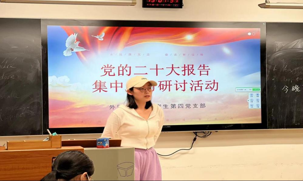 (通讯员 伍佳欣)2022年10月18日晚上7:00,澳门pg官网第四支部在腾龙楼407教室开展对于党的二十大核心思想的学习研讨活动。本次会议采取线上线下结合的方式,支部书记候奇焜老师以及21、22届全体49位党员均参与了此次会议。