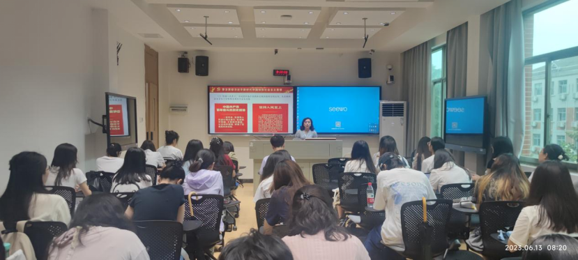 (通讯员 熊丹)2023年6月13日8时,蒋莉华副院长在腾龙楼304为澳门pg官方电子平台研究生第三党支部讲授党课,主题为“把握习近平新时代中国特色社会主义思想的世界观和方法论。”澳门pg官方电子平台研究生第三党支部全体党员出席。