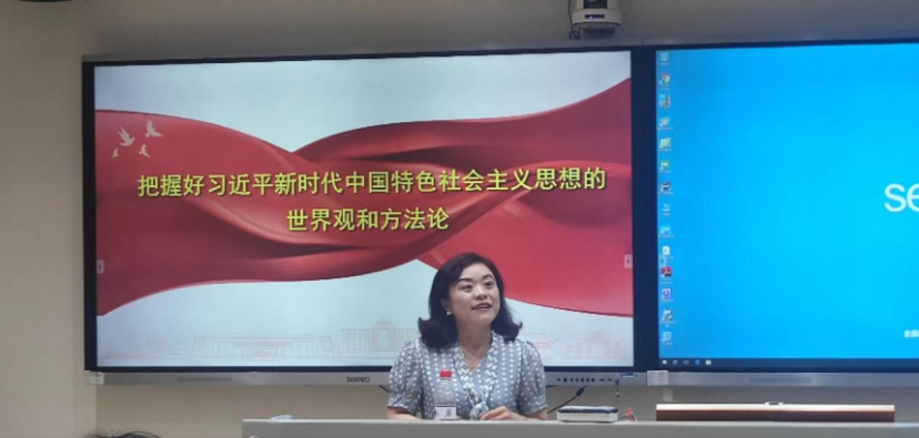 党课伊始,蒋莉华副院长简明扼要地介绍了习近平新时代中国特色社会主义思想的世界观和方法论的基本内容,围绕其集中体现、思想定位、自觉运用进行了概述,具体讲述了方法论中的“六个坚持”:必须坚持人民至上、必须坚持自信自立、必须坚持守正创新、必须坚持问题导向、必须坚持系统概念、必须坚持胸怀天下。