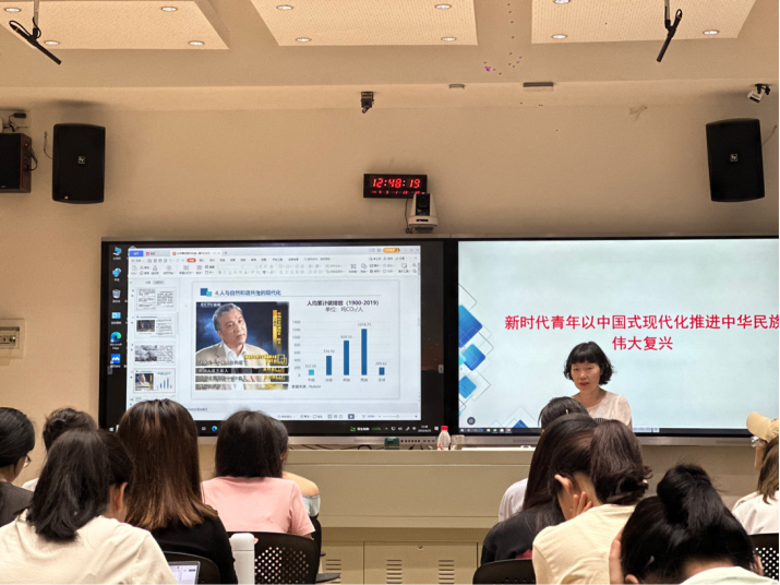 (通讯员:李文璇 黄锦云)2023年6月19日中午,澳门pg官方电子平台党委专职组织员易小源老师在腾龙楼304给研究生第五、六党支部讲授党课,主题为“新时代青年以中国式现代化推进中华民族伟大复兴”。此次党课,易老师围绕着“深刻认识中国式现代化的特色”和“牢牢把握中国式现代化的重大原则”两个方面展开,和支部内成员共同探讨作为新时代青年如何以中国式现代化来推进中华民族伟大复兴。