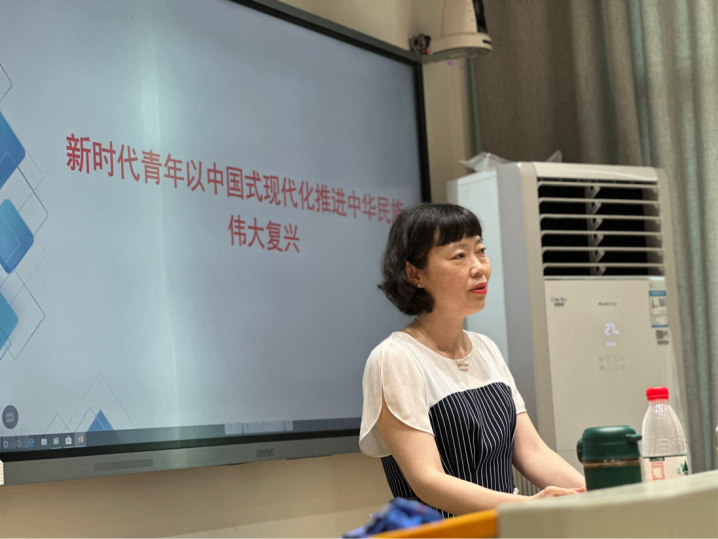 首先,易老师从人口规模、经济发展、自然生态等五个方面介绍了中国式现代化的特色。随后,易老师就中国式现代化的重大原则进行了概述,以“五个坚持”对全体党员同志提出了要求。最后,易老师结合外语专业的实际要求,希望全体党员作为新时代新青年一定要将“请党放心,强国有我”落于实际行动中,潜心科研,奉献自我,为实现中华民族伟大复兴贡献青春力量。