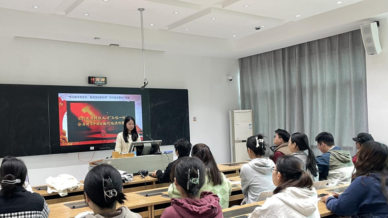 活动伊始,傅馨可对“教育家”的历史渊源和词语背景进行了详细的介绍。通过观看“担当教育新使命,奋进强国新征程”微党课,支部成员深刻认识到教育家精神在推动教育进步、培养时代新人中的重要作用。会中,副书记傅馨可引用中共中央政治局常委,国务院总理李强的批示——教师是立教之本,兴教之源,是教育发展的第一资源,强调我们作为教师队伍的有力后备军,要勇立潮头,为我国教育事业做出贡献,为实现中华民族伟大复兴提供源源动力。