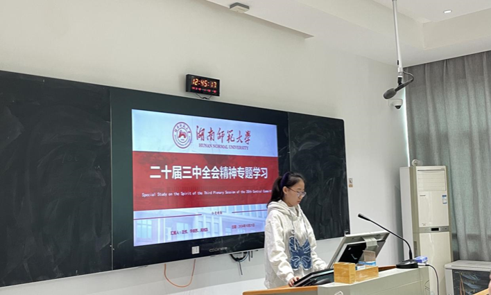 (通讯员 蔡佳珺)为全面把握党的二十届三中全会的重大意义和精神实质,澳门pg官方电子平台第一党支部于10月21日在腾龙楼604开展党的二十届三中全会精神专题学习会,本次学习会由一支部副书记傅馨可主讲,支部全体成员以饱满的热情参与其中。