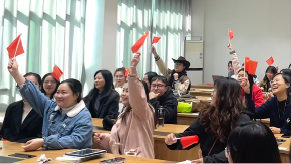 游戏环节结束,全体党员与入党积极分子齐声高唱《我和我的祖国》。歌声深情饱满,回荡悠扬,唱出了爱国爱党的无限热情,将活动氛围推向高潮。活动尾声,副书记傅馨可为在竞赛中表现优异的同志颁发奖品,全体参会人员合影留念,本次主题党日活动圆满谢幕。