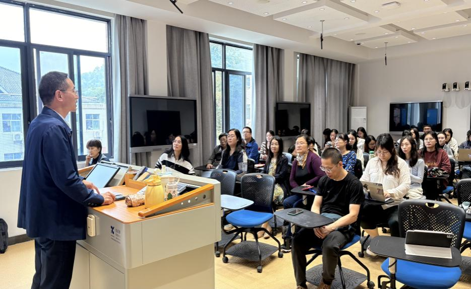 在主讲环节,梁斌书记系统阐述了新质生产力的核心内涵及其国家战略地位,并结合当前国际科技竞争背景,分析了加快发展新质生产力的重要性与紧迫性。他重点探讨了外语学科如何赋能新质生产力,指出外语人应扮演三大关键角色:全球科技情报的“精准获取者”、中国创新故事的“国际传播者”、以及掌握AI等新工具的“跨文化沟通者”。