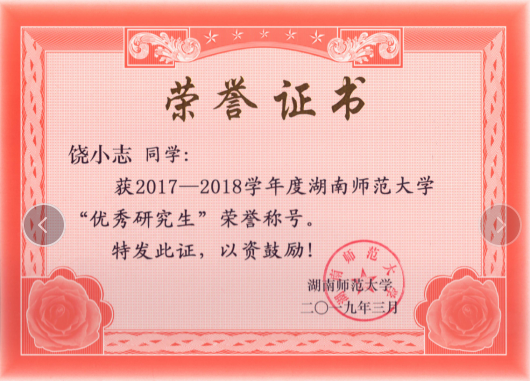 (饶小志同志获得“优秀研究生”称号)