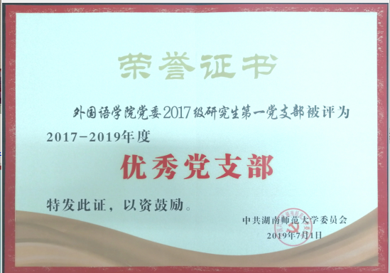 (2019年7月一党支部被评为校级“优秀党支部”)