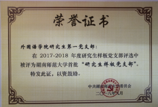 (澳门pg官网研究生一党支部评选为澳门pg官方电子平台首批“研究生样板党支部”)