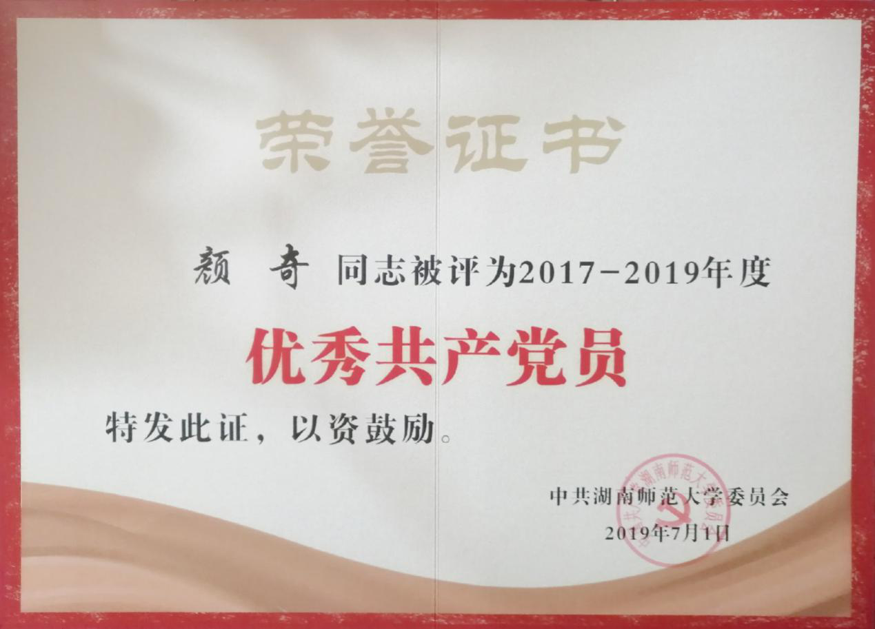 (颜奇同志被评为“优秀共产党员”)