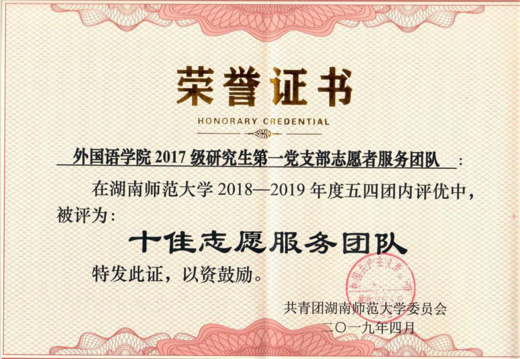 (2017级研究生一党支部荣获校级“十佳志愿服务团队”)