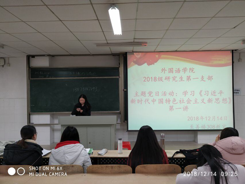 2.2018年12月14日 2018级第一党支部开展主题党日活动之学习《习近平新时代中国特色社会主义思想》第一讲