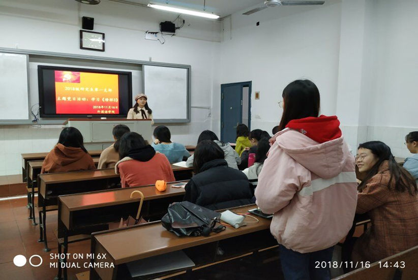 2018年11月12日,谭福民副院长为研究生所有党支部的党员上了一堂题为“当代研究生的历史使命与责任”的党课,课后大家一起讨论并分享学习心得。此次党课让党员同志们了解到作为一名研究生党员应该承担的使命与责任是什么,以及该如何践行这一使命与担当。