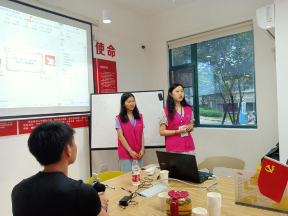 志愿者们通过视频展示、情景模拟、词句补充等多种教学方式,向社区英语爱好者介绍了购物相关的实用英语表达,理性消费的观念,为社区党员同志分享了红色励志故事《毛泽东宴请陈嘉庚》,并向他们教授该故事中“艰苦朴素”、“勤俭节约”和“优良传统和作风”的英文表达,现场积极互动、反响热烈。