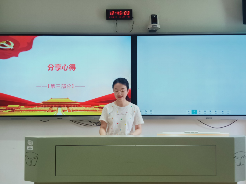 活动伊始,支部副书记谭畅为同学们介绍了“学史力行”的内涵和重要性。随后,支部全体成员一同观看了名为“走进毛泽东”的视频,其中讲述了中国共产党不断探索,最终找到了一条具有中国特色发展之路的故事。之后,支部全体成员对此分享心得体会,党员刘诗娴对什么是“学史力行”发表了自己的看法。在她看来,学史力行强调的是青年学子应该听党指挥,在平凡的岗位上尽职尽责,不断提升自身修养,坚定理想信念,继承和发扬先辈们的奉献精神,明确使命责任,找准决策定位,成就自我。积极分子周雨辰提出,学史力行要结合时事政治,进一步强化对党的认识,发扬艰苦奋斗的优良品德,他认为,在党史的学习教育中,要带着问题学,要在实践中学,要学以致用。