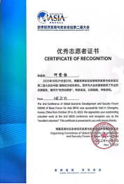 2023年9月-10月,曾晨、曹映倩、何紫怡等志愿者参与博鳌亚洲论坛全球经济发展与安全论坛第二届大会服务工作。