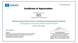 2023年6月,蒲晓娇、曾晨、郑巧、孟祎凡等50多名志愿者参与了“一带一路”青年创意与遗产论坛暨长沙媒体艺术节。
