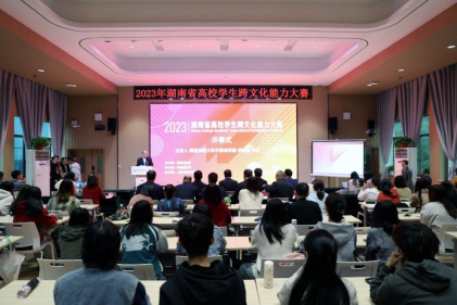 2023年11月,蒲晓娇、董妍、吕迪、皮亚兰等20余名同学在第六届“外教社杯”湖南省高校学生跨文化能力大赛中担任志愿者。