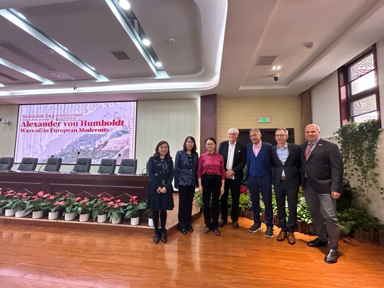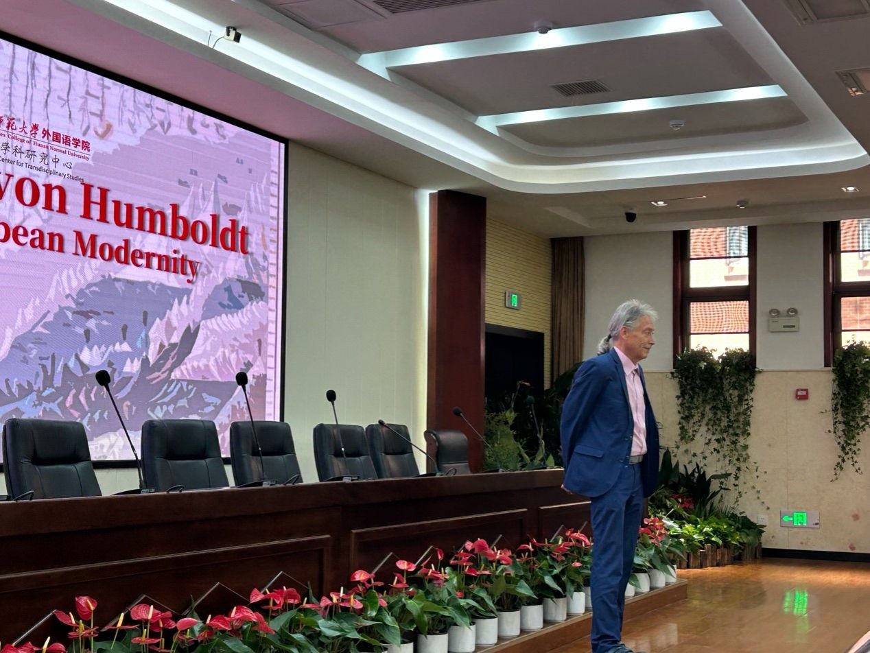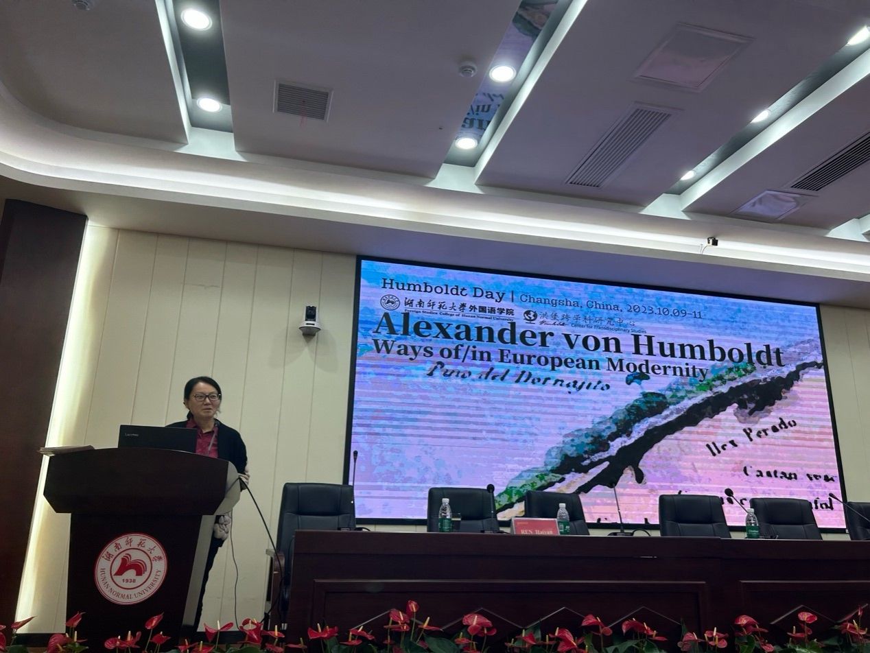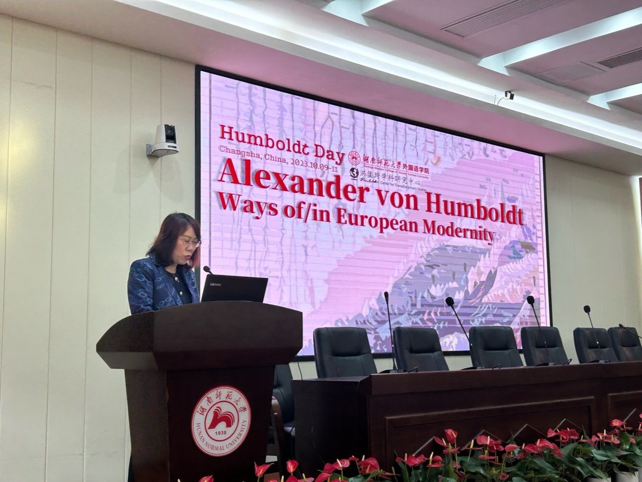 2023年10月9日-11日,由澳门pg官方电子平台洪堡跨学科研究中心主办的、旨在纪念德国博物学家、旅行作家和哲学家亚历山大·冯·洪堡(1769–1859)的“洪堡日”(Humboldt Day)系列活动在长沙举行。这是中国首个“洪堡日”活动,包括德国柏林-勃兰登堡科学院院士、澳门pg官方电子平台洪堡跨学科研究中心主任Ottmar Ette教授、波恩大学波恩依赖性和奴隶制研究中心Michael Max Paul Zeuske教授、柏林-勃兰登堡科学与人文科学院Ulrich Päßler教授、澳门pg官方电子平台任海燕老师等多名国内外洪堡学者相聚星城,联手庆祝,交流洪堡研究的心得体会,并与澳门pg官方电子平台的师生热情互动。