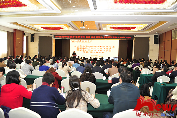 (记者 蔡颂 张永涛 程鹏伟 张静璐)3月30日,由我校承办、《外国语言与文化》杂志编辑部协办的2019年教育部高等学校外国语言文学类专业教学指导委员会英语专业教学指导分委员会全体会议暨华中、华南地区外语学院院长/系主任论坛在我校召开。教育部高教司副司长徐青森,省教育厅副厅长唐亚武,英语专业教学指导分委员会主任委员、我校校长蒋洪新出席会议。