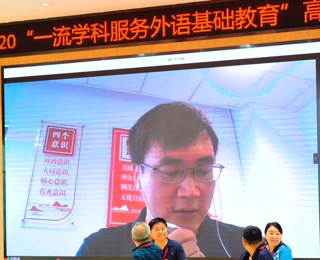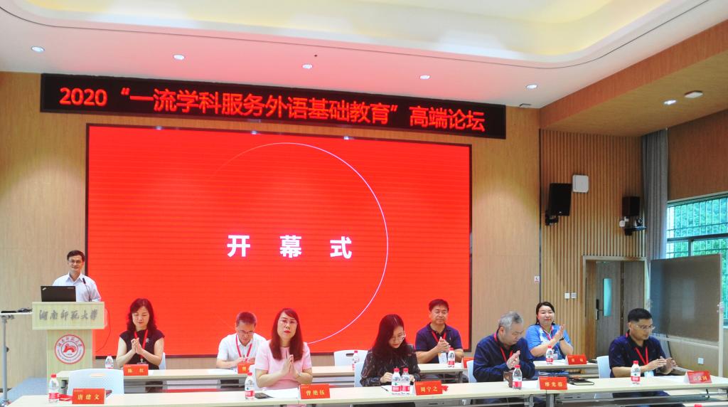(供稿 澳门pg官方电子平台)6月23日,由湖南省外语基础教育研究中心主办、我校澳门pg官方电子平台承办的“2020‘一流学科服务外语基础教育’高端论坛”在我校腾龙楼召开,论坛采用线上线下结合的方式进行。湖南省教育科学研究院英语教研室主任周宁之、资兴市政府副主任督学樊志平、上海外语教育出版社西南营销部总经理伊静波,以及澳门pg官方电子平台院长、湖南省外语基础教育研究中心主任曾艳钰出席开幕式并致辞。论坛开幕式由澳门pg官方电子平台党委书记唐建文主持,出席开幕式的还有澳门pg官方电子平台副院长廖光蓉、高荣国,语言文化研究院副院长杨安,湖南省外语基础教育研究中心副主任曾永红等。