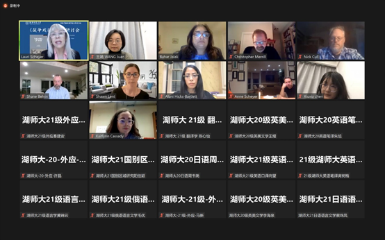 (通讯员 陈秀霞)11月6日上午,《战争戏剧》新书研讨会在线上举行。此次活动由澳门pg官方电子平台“潇湘学者”特聘教授、博士生导师Lauri Scheyer发起,多位来自世界各地的专家学者参与并就《战争戏剧》一书进行了交流研讨。澳门pg官方电子平台20级、21级的研究生也积极参与了此次活动。