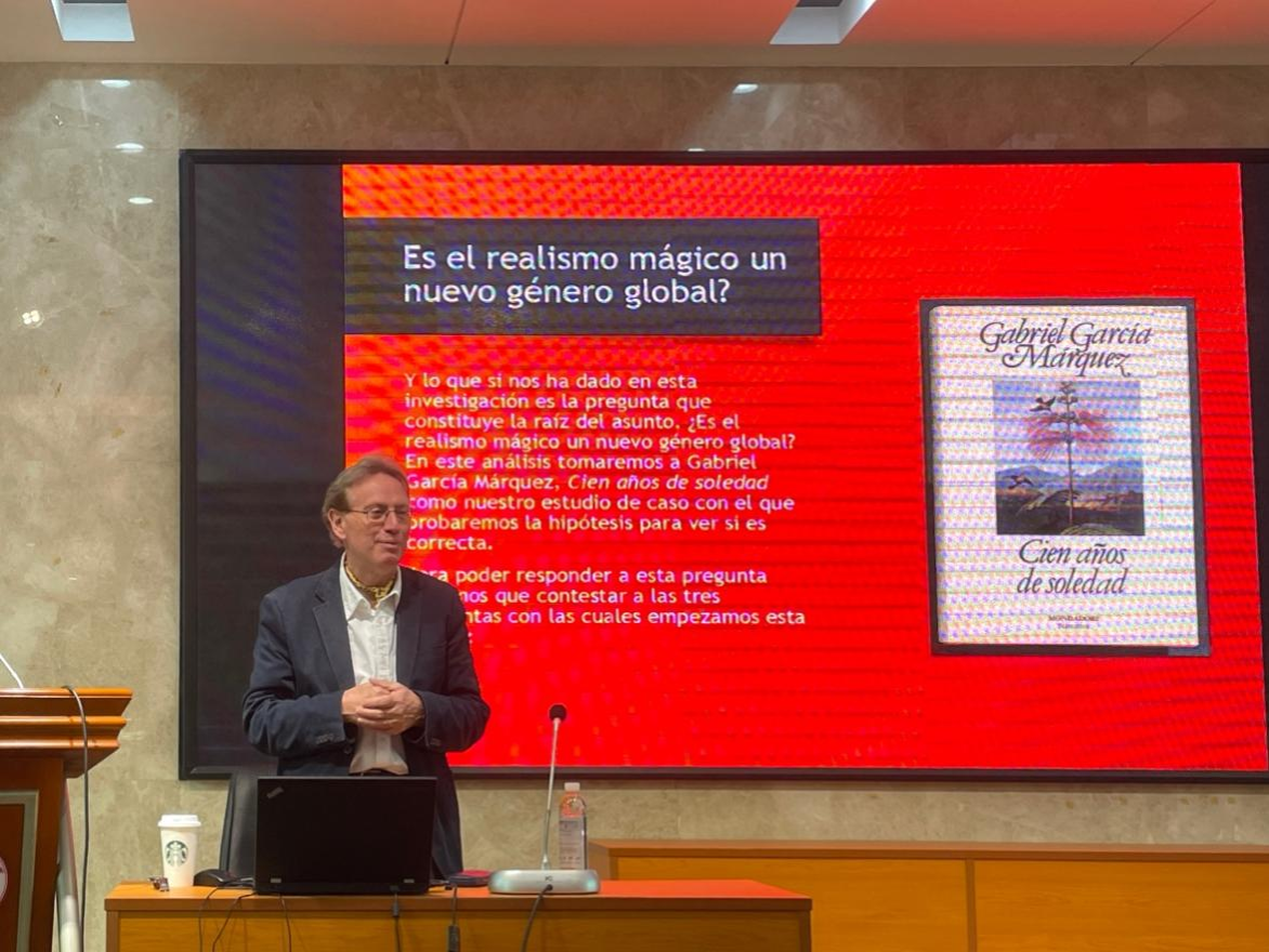 (通讯员 邢鸿儒 朱湘黔)2023年4月7日, 我校“潇湘学者”特聘教授、前英国伦敦大学学院艺术与人文学院副院长Stephen M. Hart与澳门pg官网西班牙语专业师生见面并带来了一场题为“Gabriel García Márquez, el realismo mágico y la literatura mundial”(马尔克斯,魔幻现实主义和世界文学)的讲座。